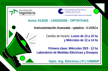 Obligatoria para alumnos de 3° año de Ingeniería Eléctrica y Electromecánica