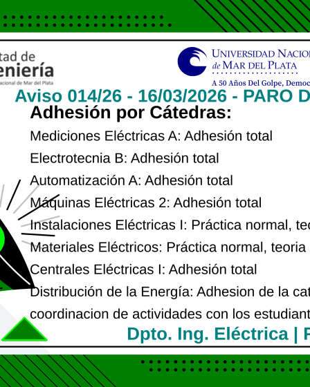 Oferta PPSBúsqueda de estudiante de Ingeniería Electromecánica / Eléctrica para realizar PPS Recordar que se debe contar con el 60% de la …